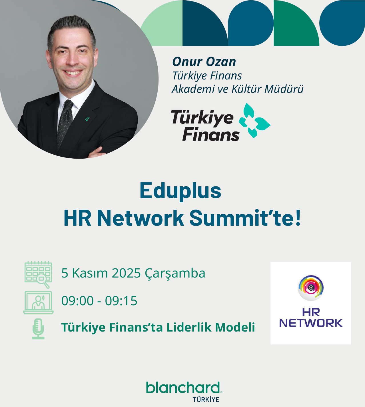 Zirvede, Türkiye Finans Katılım Bankası Akademi ve Kültür Müdürü Sayın Ozan Onur, Blanchard Türkiye iş birliğiyle geliştirilen liderlik gelişim programları olan "Türkiye Finans'ta Liderlik Modeli" başlıklı programları hakkında bilgileri paylaşacak.
